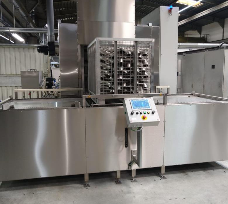 Die Spritz-Rotations-Reinigungsanlage SRR ist speziell für die effektive Reinigung von Massengut- und Serienteilen wie Stanz- und Pressteilen, Gehäusen oder Getrieben konzipiert. Die Werkstücke werden in Körben oder Eurogitterboxen mit Abmessungen bis 1200 × 800 × 800 mm geladen und können je nach Reinigungsanforderung während des Prozesses gedreht oder geschwenkt werden. Die Anlage kombiniert Spritzreinigen, Spülen und Trocknen in einem geschlossenen System und bietet dadurch eine hohe Reinigungsleistung bei großem Teilevolumen.